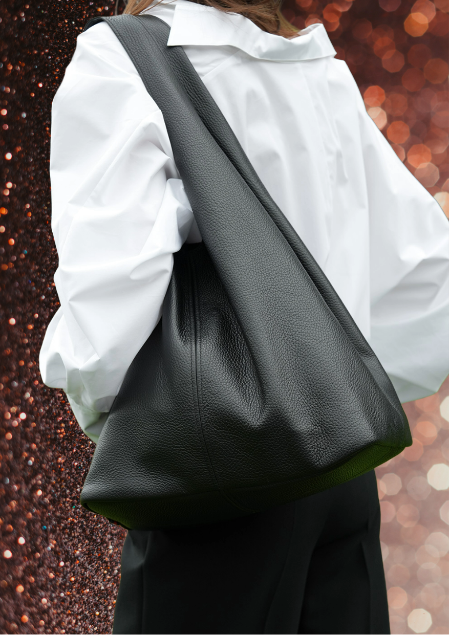 Ein großer Beutel, in den einfach Alles passt. Bobo ist in Handarbeit in Glattleder gearbeitet. Das Bottalato- Leder ist robust und langlebig, dabei flexibel. Bobo kann als Clutch, Schultertasche oder Crossbody getragen werden.